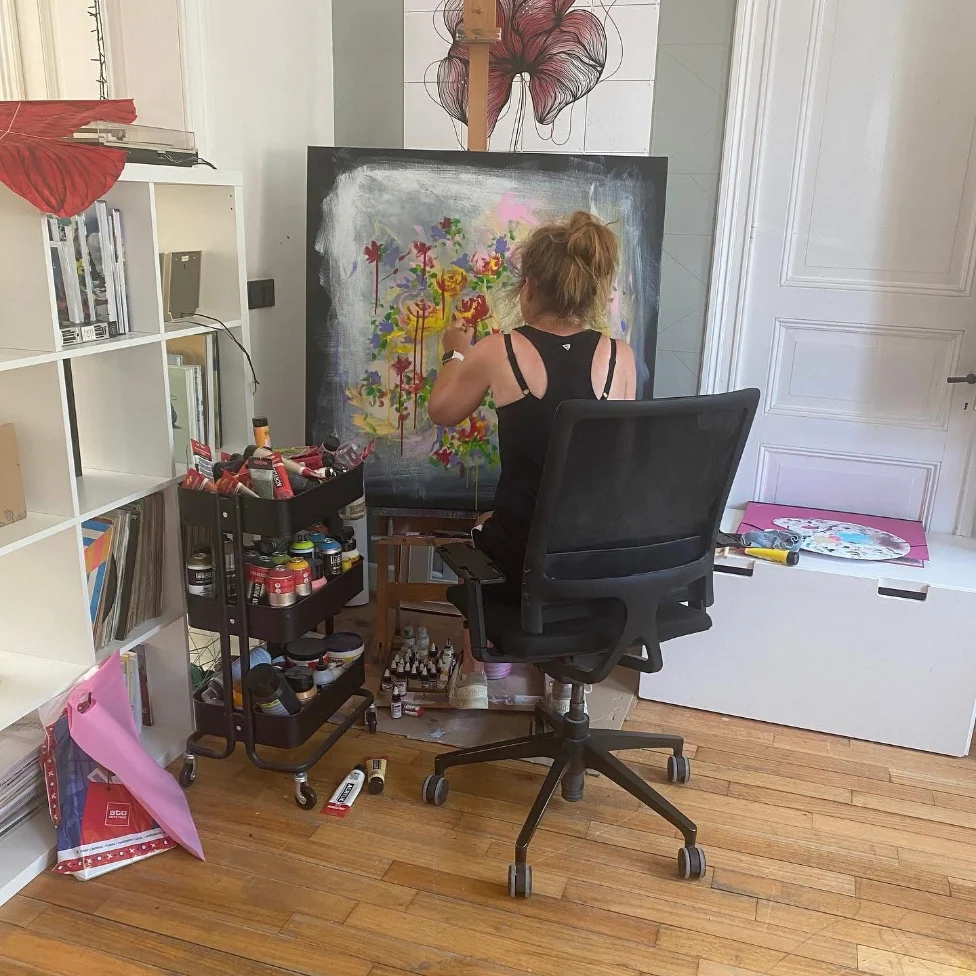 Naast haar digitale en mixed media werken, werkt Elke ook op doek met acryl. In deze schilderijen krijgen kleur en bloemen een prominente plaats. Ze vormen een expressieve tegenhanger van haar illustratieve werk en brengen een gevoel van groei, zachtheid en levenslust naar voren.